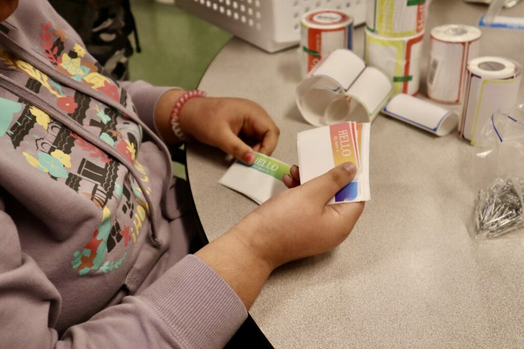 Recently, as students counted out pens, name tags, and bendeez, they learned the training materials are taken all over the world! “Wow,” L.T. said while giving a thumbs-up. “That’s pretty cool.”