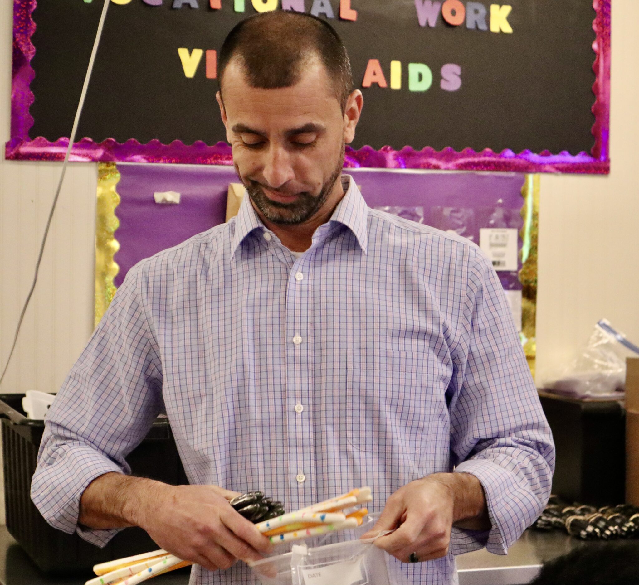 Bryan Teeter, who has been with Grafton for over 16 years, leads the CTE Classroom and has been working with the program for seven years. Our team was excited when Teeter agreed to facilitate this ongoing project. To some it may seem like a simple task of counting out pens, name tags and bendeez, but to these students it means they are learning lessons that will support their efforts to ultimately get a job in the community.